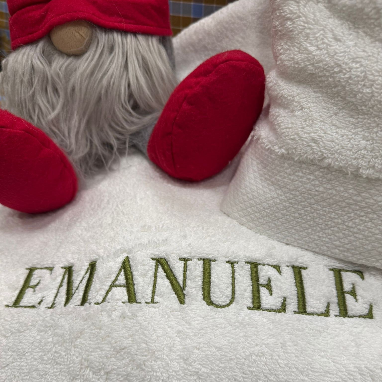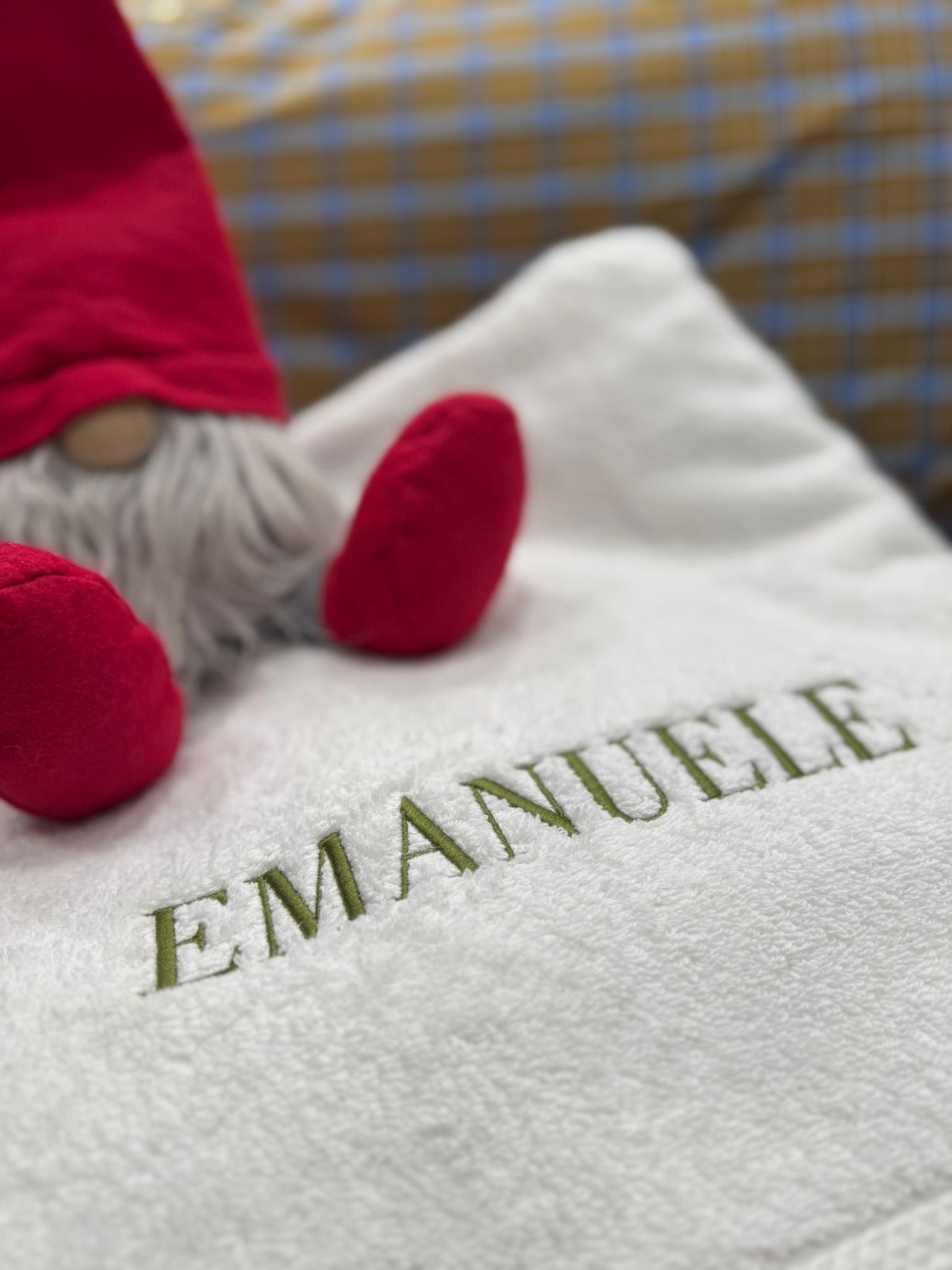 Scegli il colore, Indicaci il nome da ricamare nelle note (Le note le puoi compilare una volta inserito l'articolo nel carrello!)... e il resto lo faremo noi!