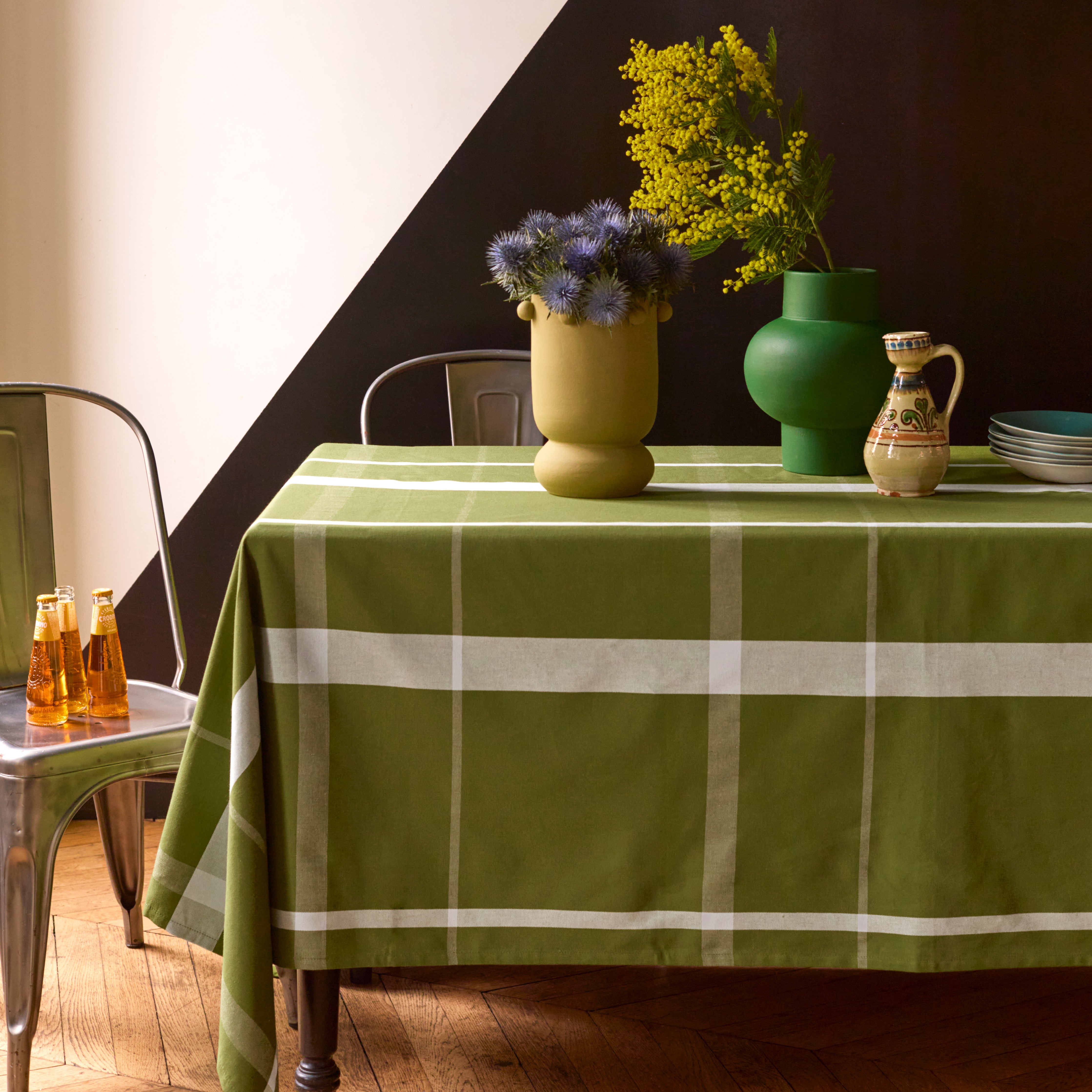 Realizzata in tessuto di cotone con base bianca e motivo scozzese nero, questa tovaglia è perfetta per donare un tocco di eleganza rustica e senza tempo alla tua tavola.