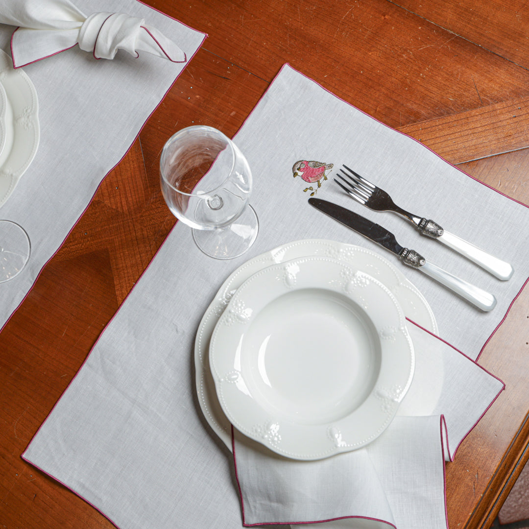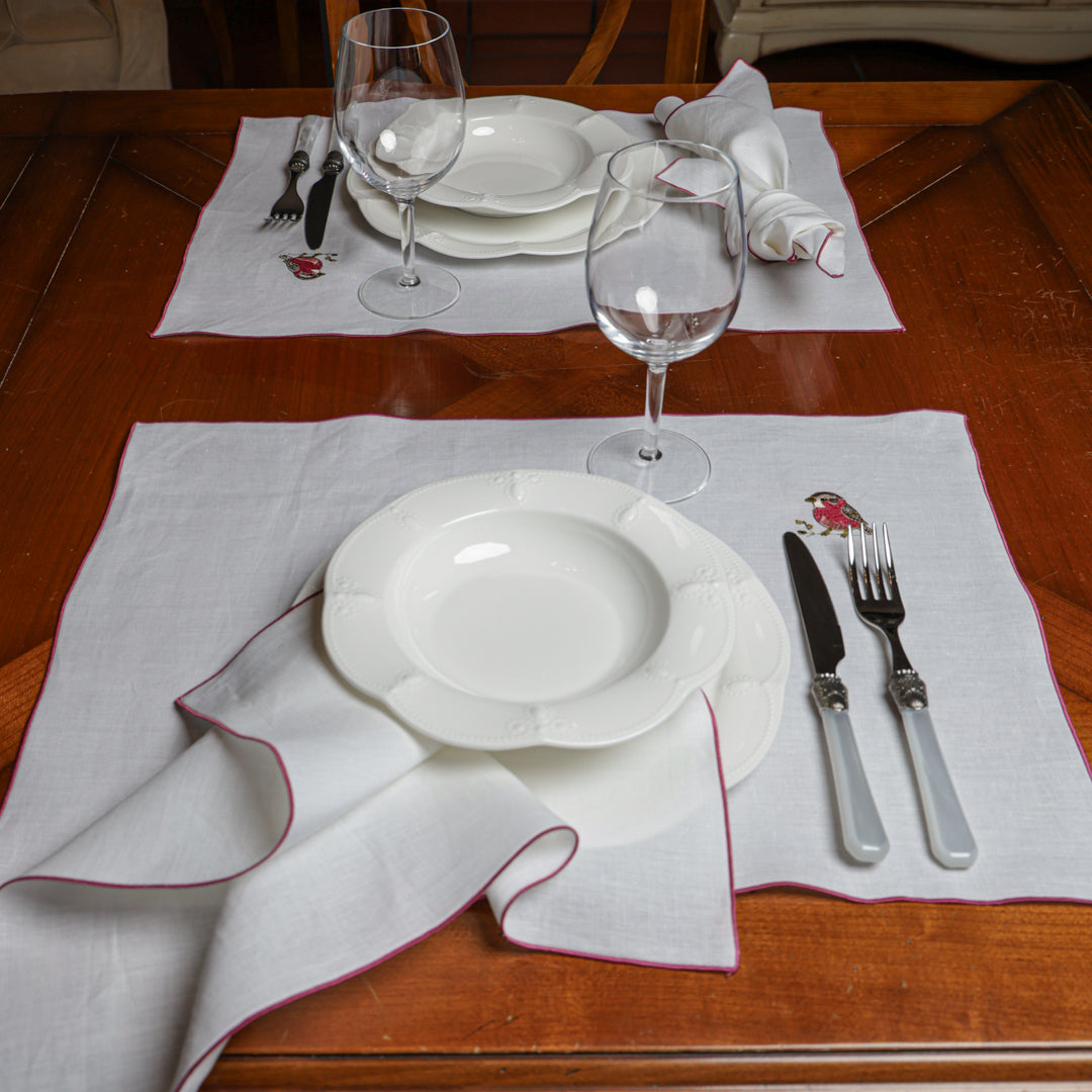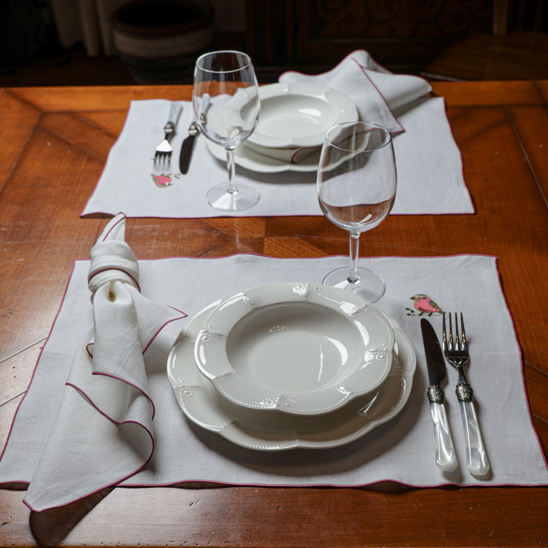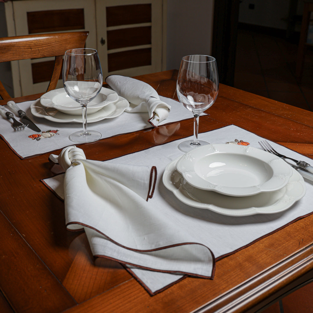 Le eleganti Tovagliette Ricamate sono raffinate per la tua tavola. La cura della nostra confezione si nota nei piccoli particolari che fanno la differenza, resistenti nelle cuciture e curate nei dettagli, con ricami ben rifiniti e dai colori nitidi. Raffinate ma semplicissime da abbinare, semplici da lavare: realizzate in puro lino con e filati in pura seta per il ricamo.