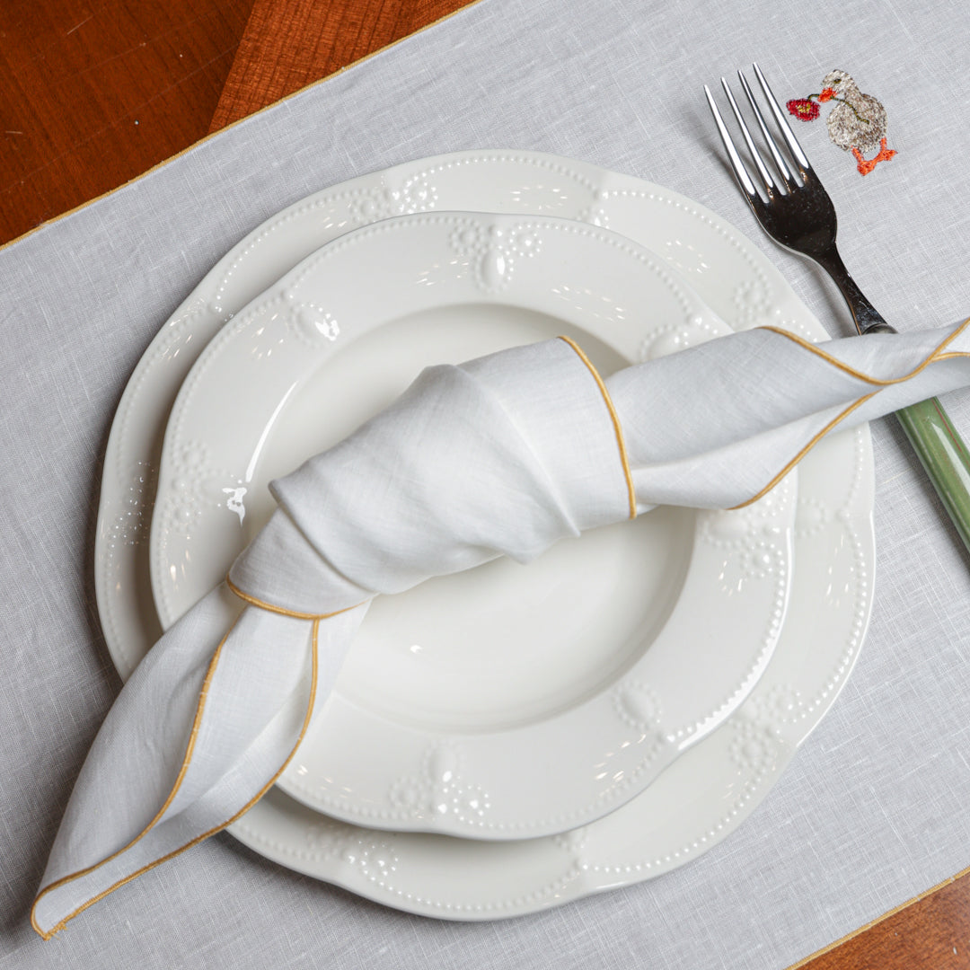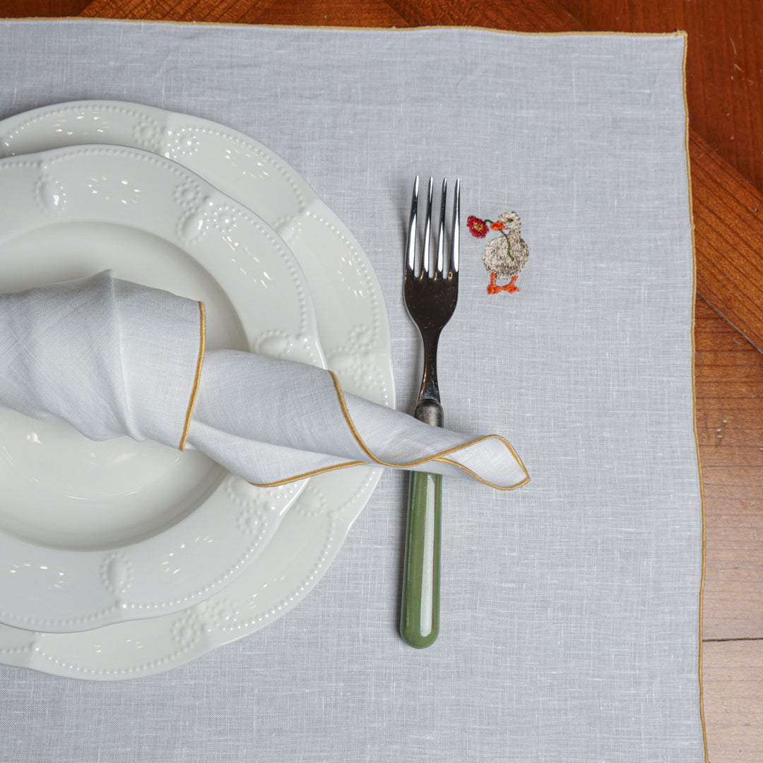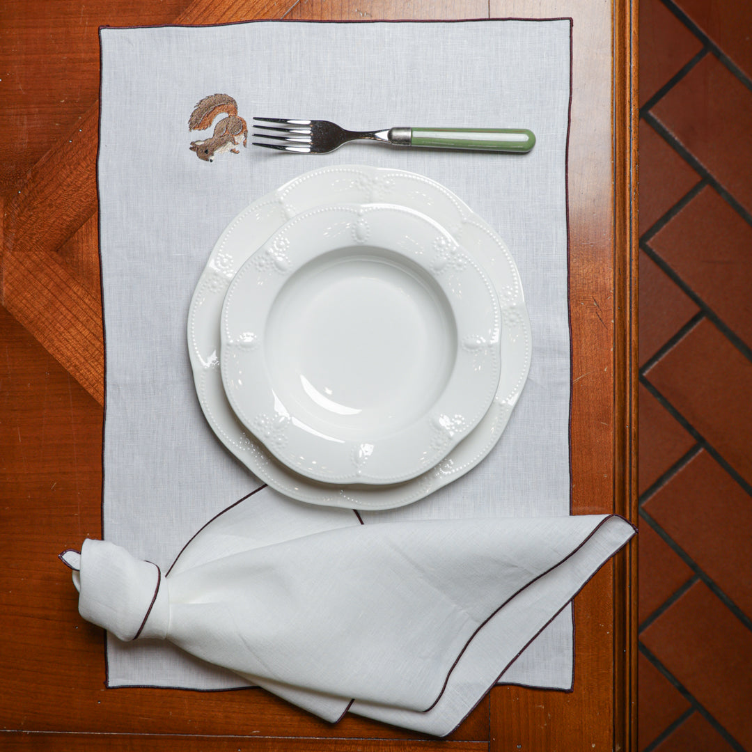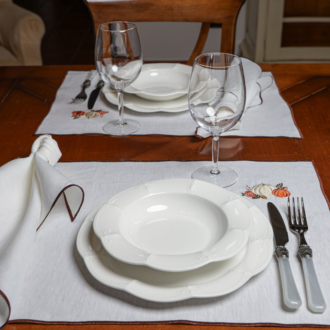 Le eleganti Tovagliette Ricamate sono raffinate per la tua tavola. La cura della nostra confezione si nota nei piccoli particolari che fanno la differenza, resistenti nelle cuciture e curate nei dettagli, con ricami ben rifiniti e dai colori nitidi. Raffinate ma semplicissime da abbinare, semplici da lavare: realizzate in puro lino con e filati in pura seta per il ricamo.