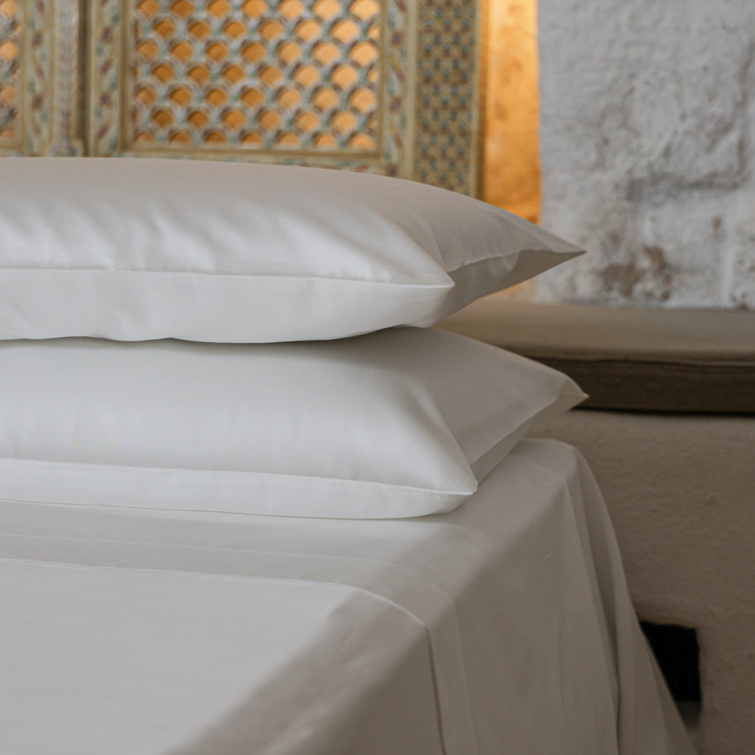 1 Lenzuolo Sopra con piegone da 10 cm + 1 Lenzuolo Sotto con elastici ai 4 angoli + 2 Federe a sacchetto
